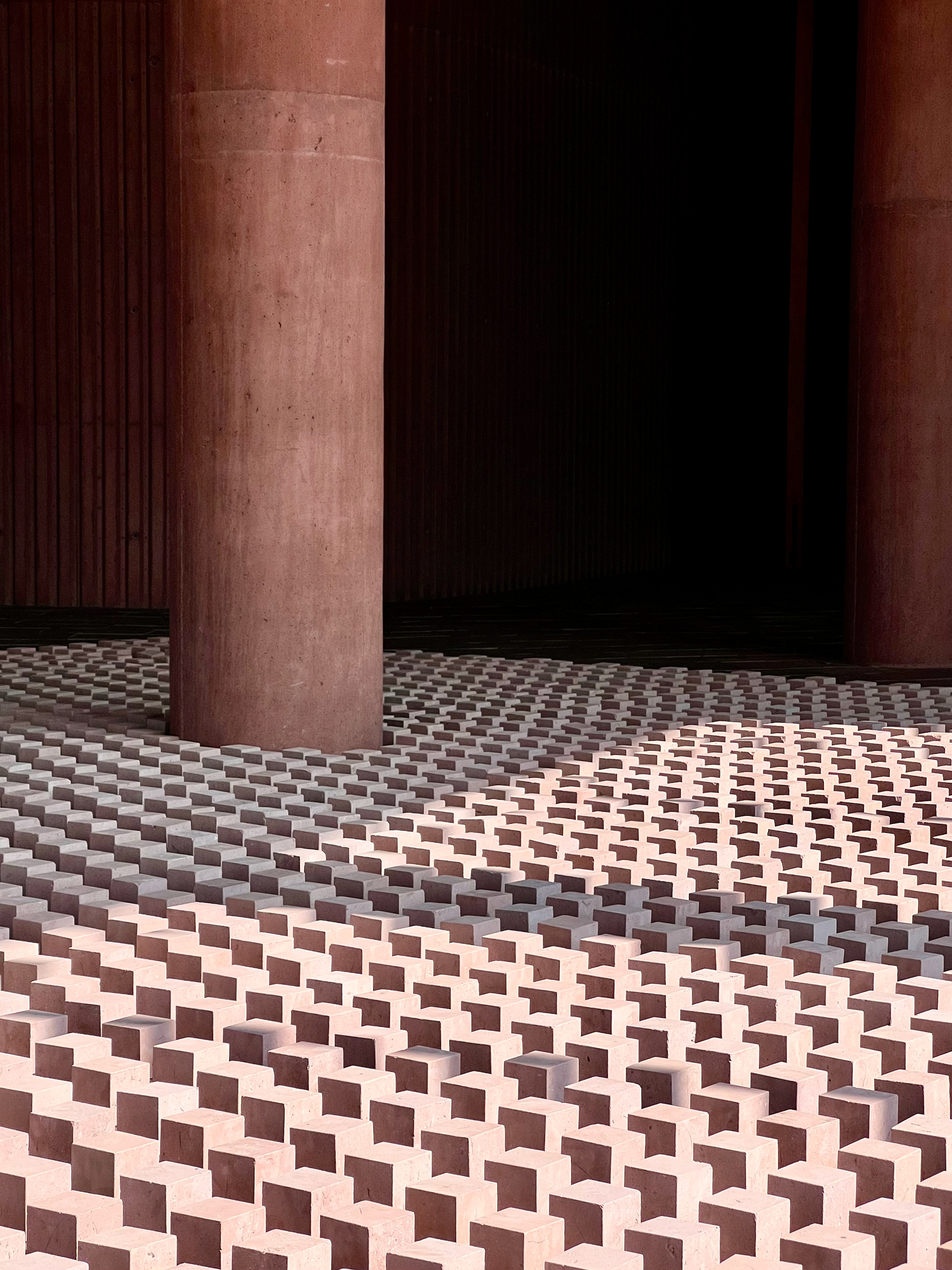 Pabellón escultórico de 1000 piezas de cantera rosa (piedra toba)