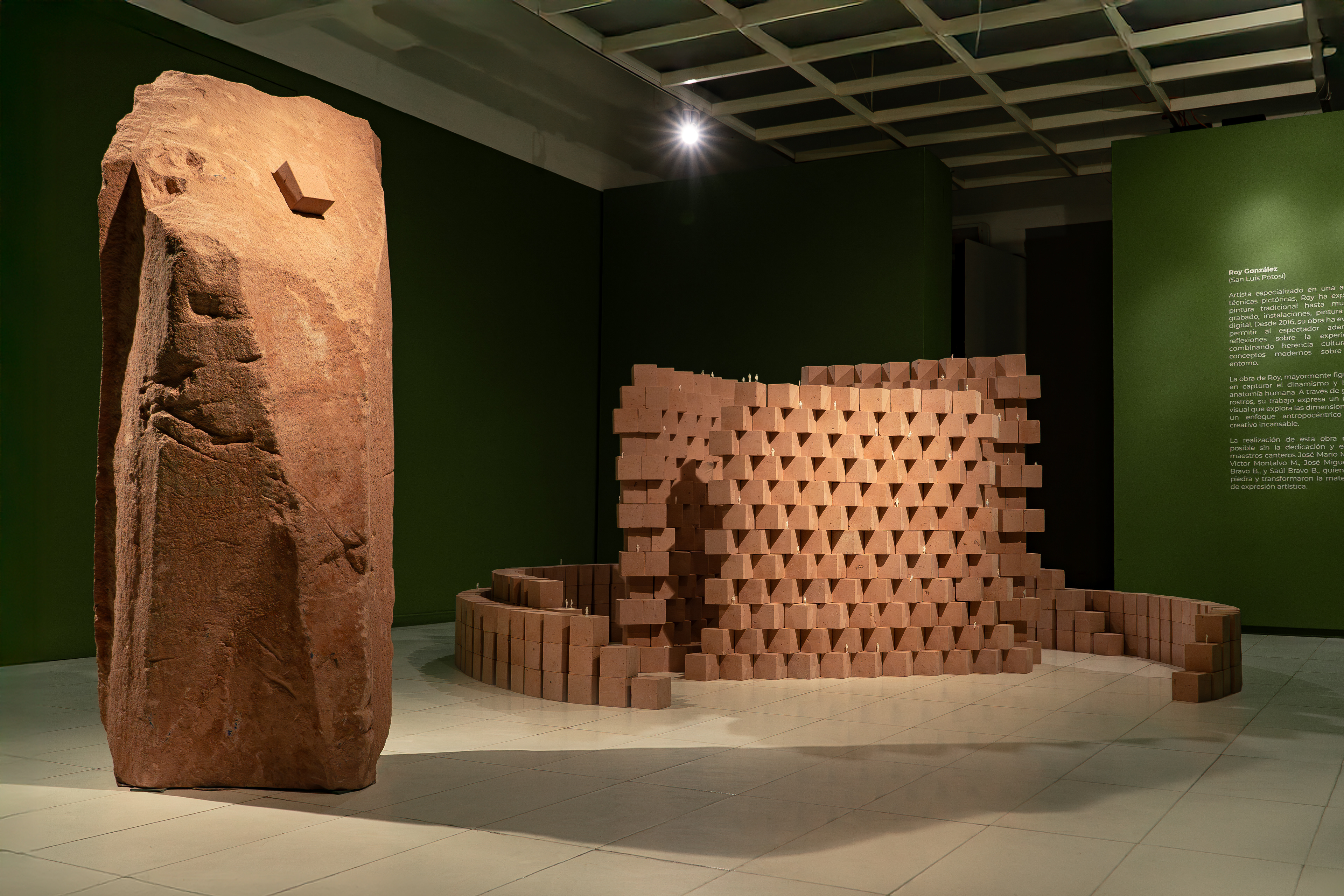 Un monolito de piedra toba (cantera) de 6 toneladas y mil cubos de la misma piedra; una obra que habla sobre el ciudadano, sobre la ciudad y sobre la apropiación libre y consciente del espacio; la permanencia y la identidad; la intervención y el ritual milenario de poner La Primera Piedra.